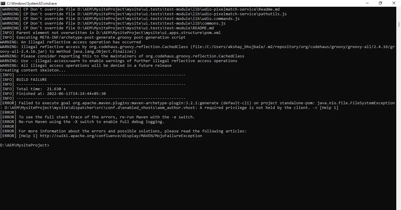 @akshaybhujbale Run above command as a elevated user or Run as Administrator or try excluding dispatcher module from build if you don't need that.