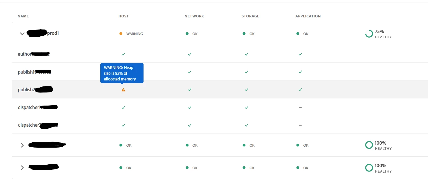 One of the publish server has high heap size which is 82% of the allocated memory.