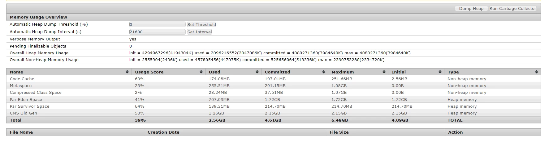 Checking the same publish instance's memory usage at /system/console/memoryusage, we see the below stat -