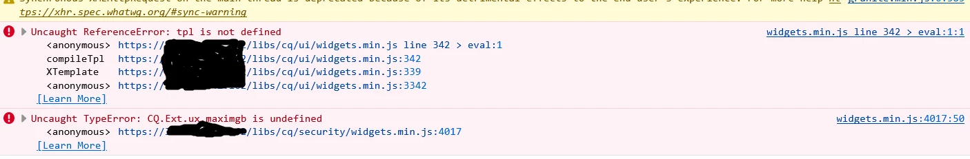 AEM publisher server: Errors in widgets.min.js when trying to use security.html or useradmin