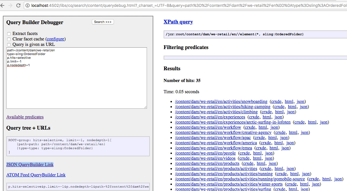 The query returns 35 records, while there are only 6 folders under /content/dam/we-retail/en. How can i return only these 6?