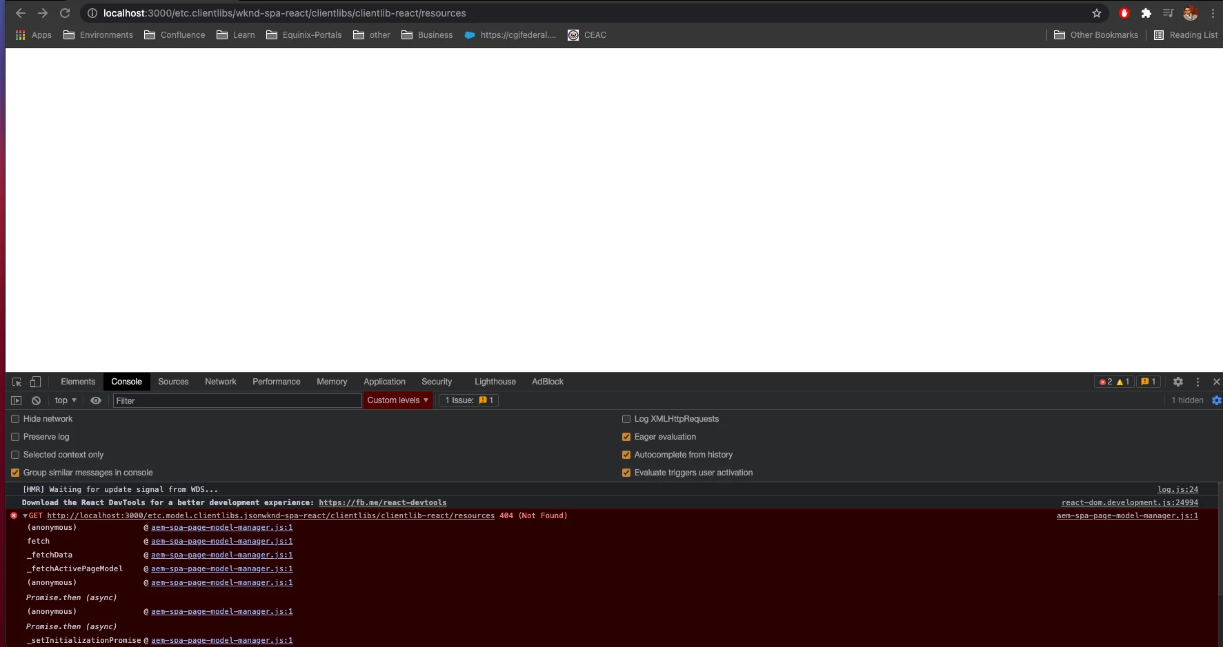 AEM React spa example 404 http://localhost:3000/etc.model.clientlibs.jsonwknd-spa-react/clientlibs/clientlib-react/resources
