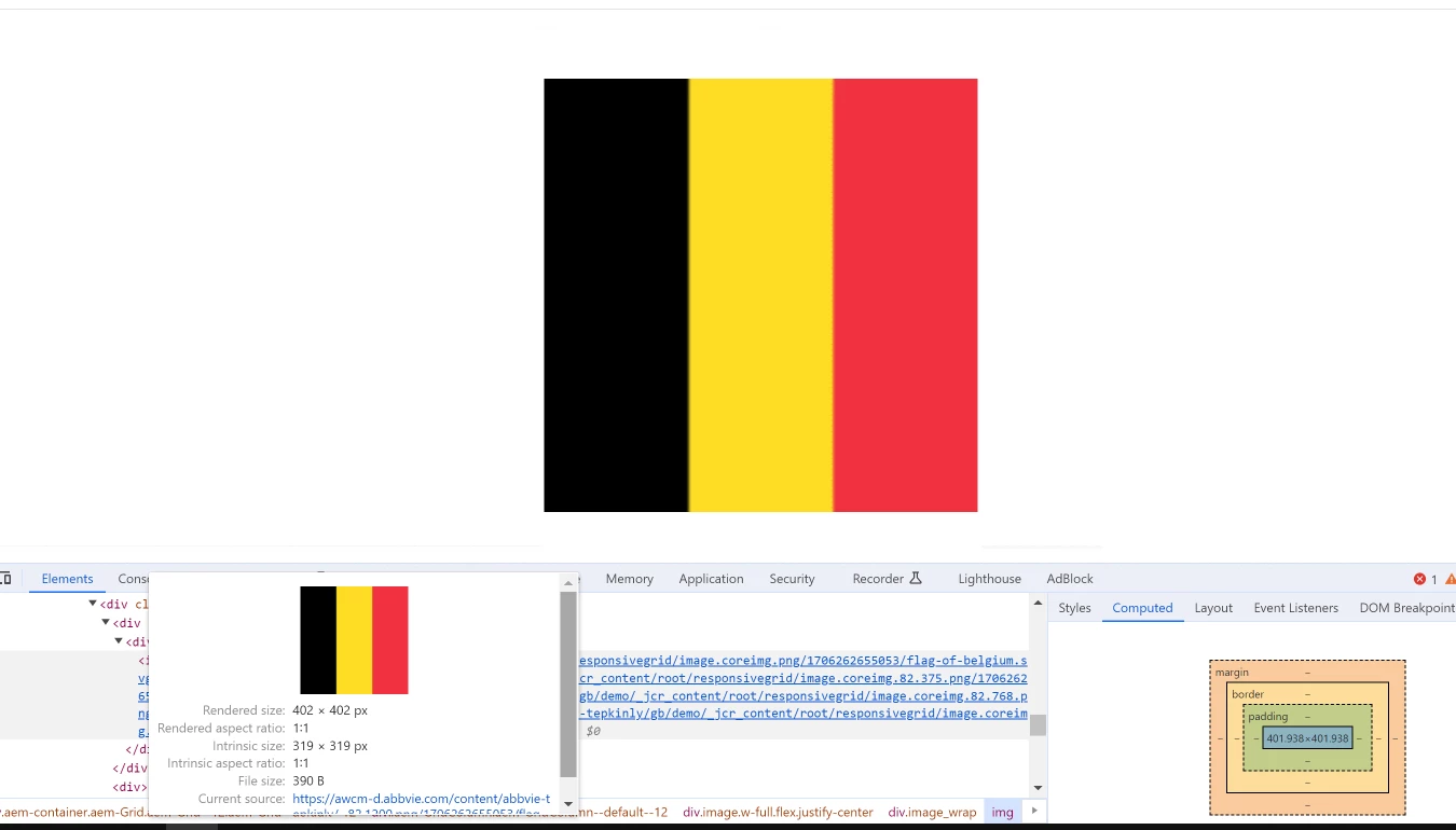 <img src="/.../gb/demo/_jcr_content/root/responsivegrid/image.coreimg.png/1706262655053/flag-of-belgium.svg.png" alt="sgvd" srcset="/.../gb/demo/_jcr_content/root/responsivegrid/image.coreimg.82.375.png/1706262655053/flag-of-belgium.svg.png 375w,/.../gb/demo/_jcr_content/root/responsivegrid/image.coreimg.82.768.png/1706262655053/flag-of-belgium.svg.png 768w,/.../gb/demo/_jcr_content/root/responsivegrid/image.coreimg.82.1200.png/1706262655053/flag-of-belgium.svg.png 1200w">