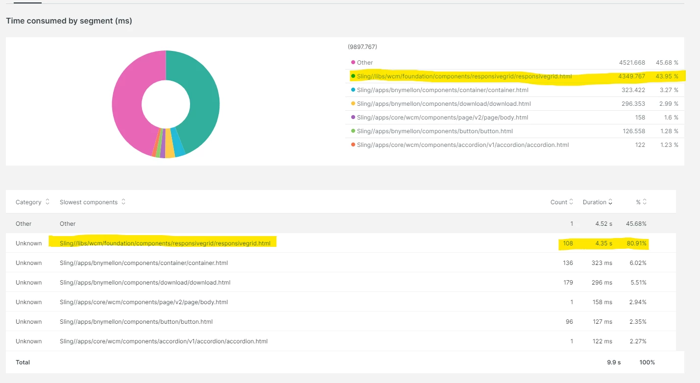 AEM responsivegrid is the slowest component and consumed the highest CPU