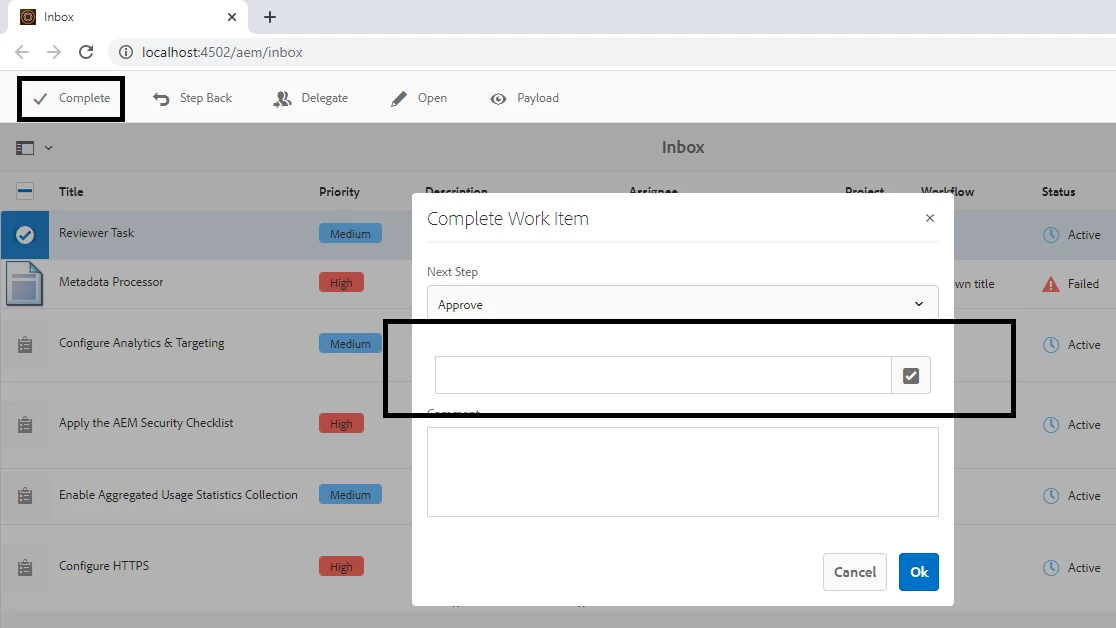 Have a requirement where a workflow notification user selects task and completes it by providing path in