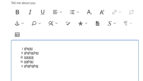 what is the AEM rte plugin configuration for list roman numbers (i,ii,iii,iv) and letters (a,b,c) ? i know that we already have rte plugin list configuration for numbers and bullets in out of the box.but do we plugins for ilst roman numbers (i,ii,iii,iv) and letters (a,b,c). if yes, please let me know how to configure.else suggest java script file path for overlaying .i am using AEM 6.4