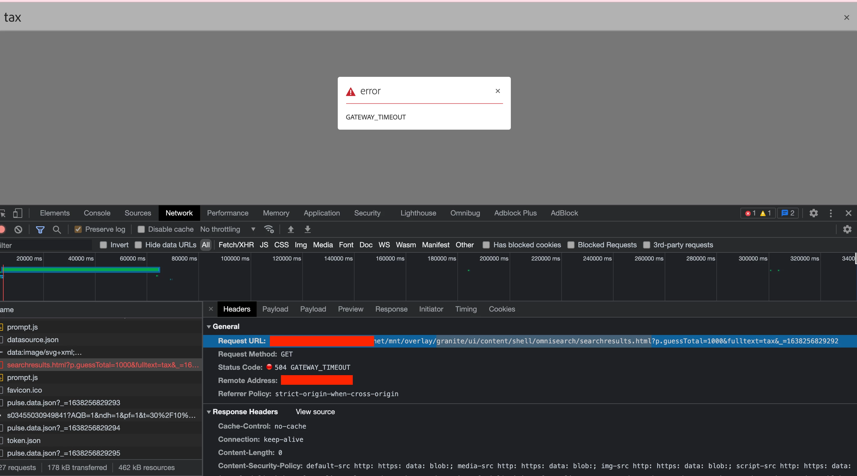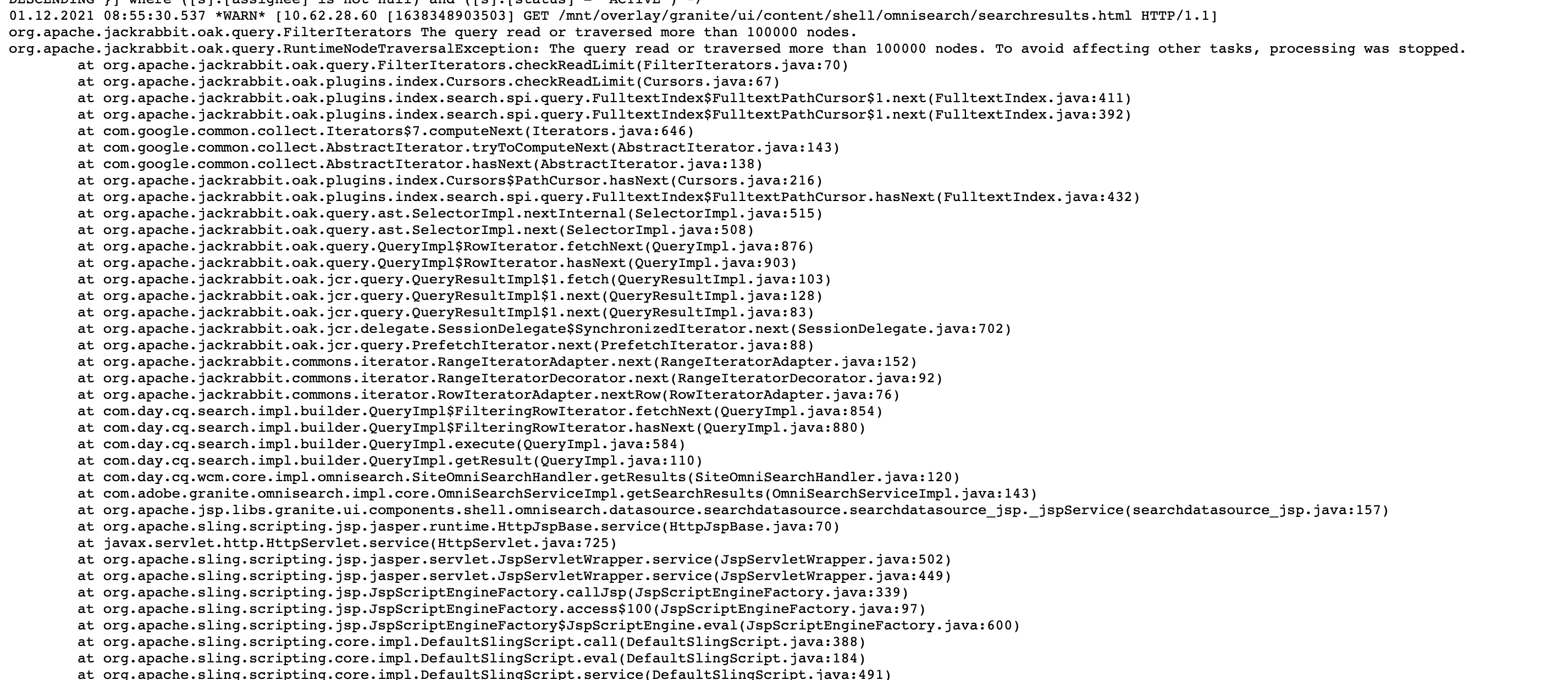 When we try to search a page in AEM it ends up in time out error. see screenshot below.