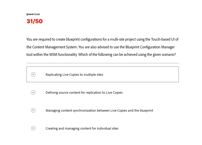 We follow the Adobe Experience League Community Forum Guidelines in this discussion thread. If the response resolves your question, consider giving a Like to the learning specialist who replied. We appreciate the kudos! Questions outside the scope of the online courses and exam preparation guide will be directed to the main community forum page.