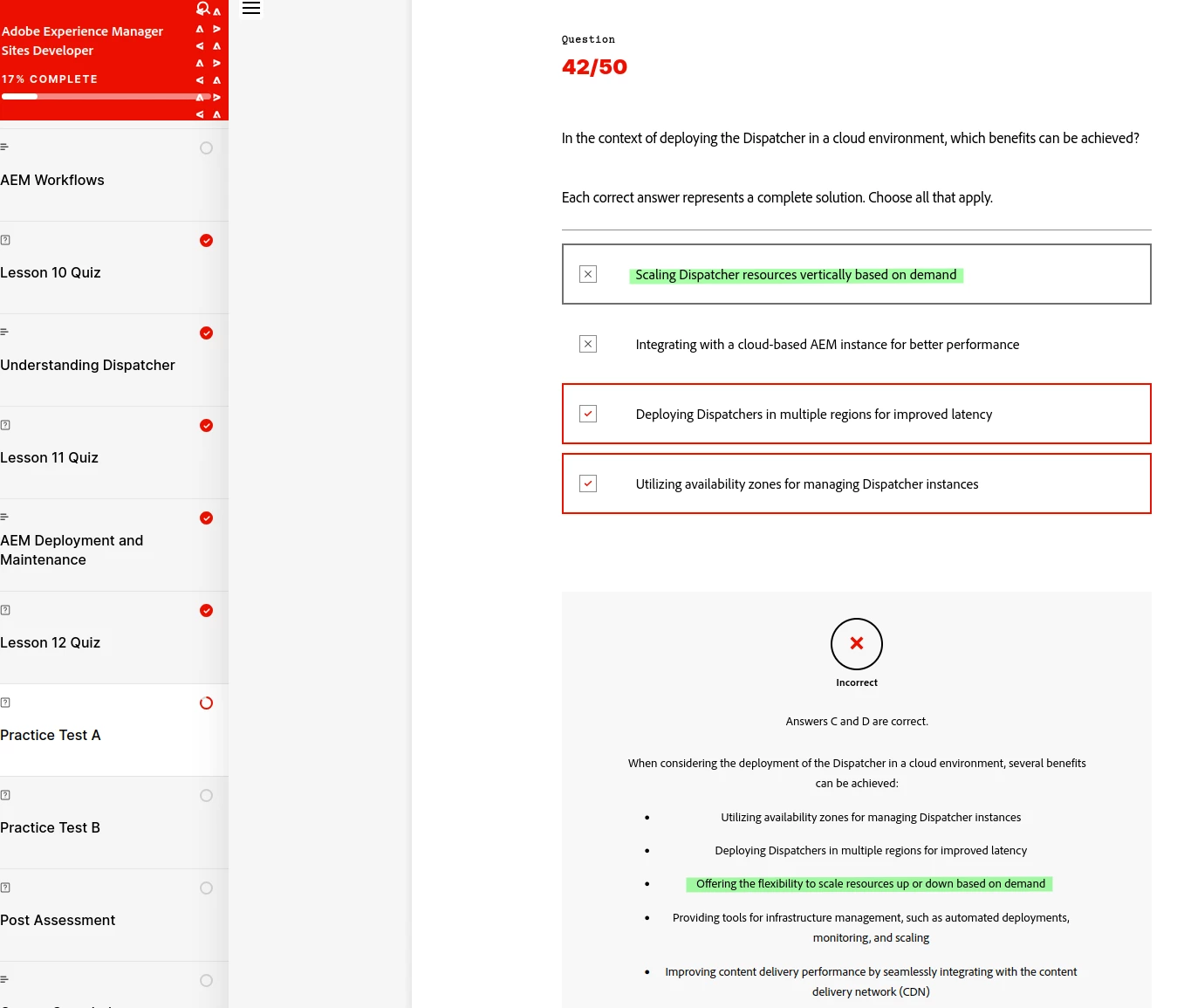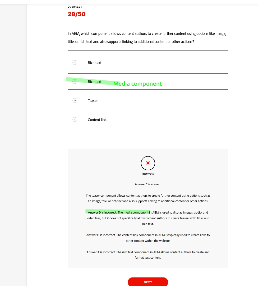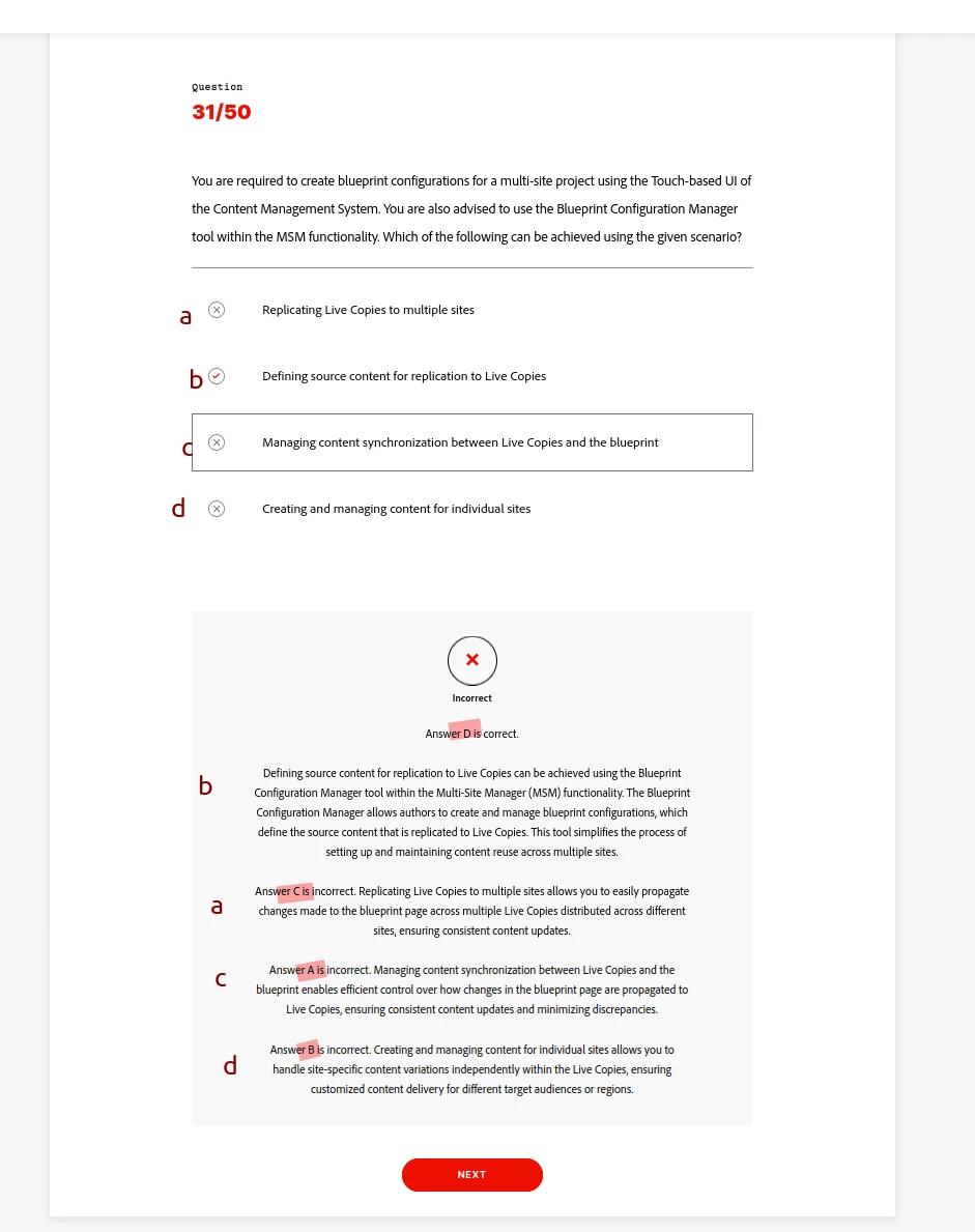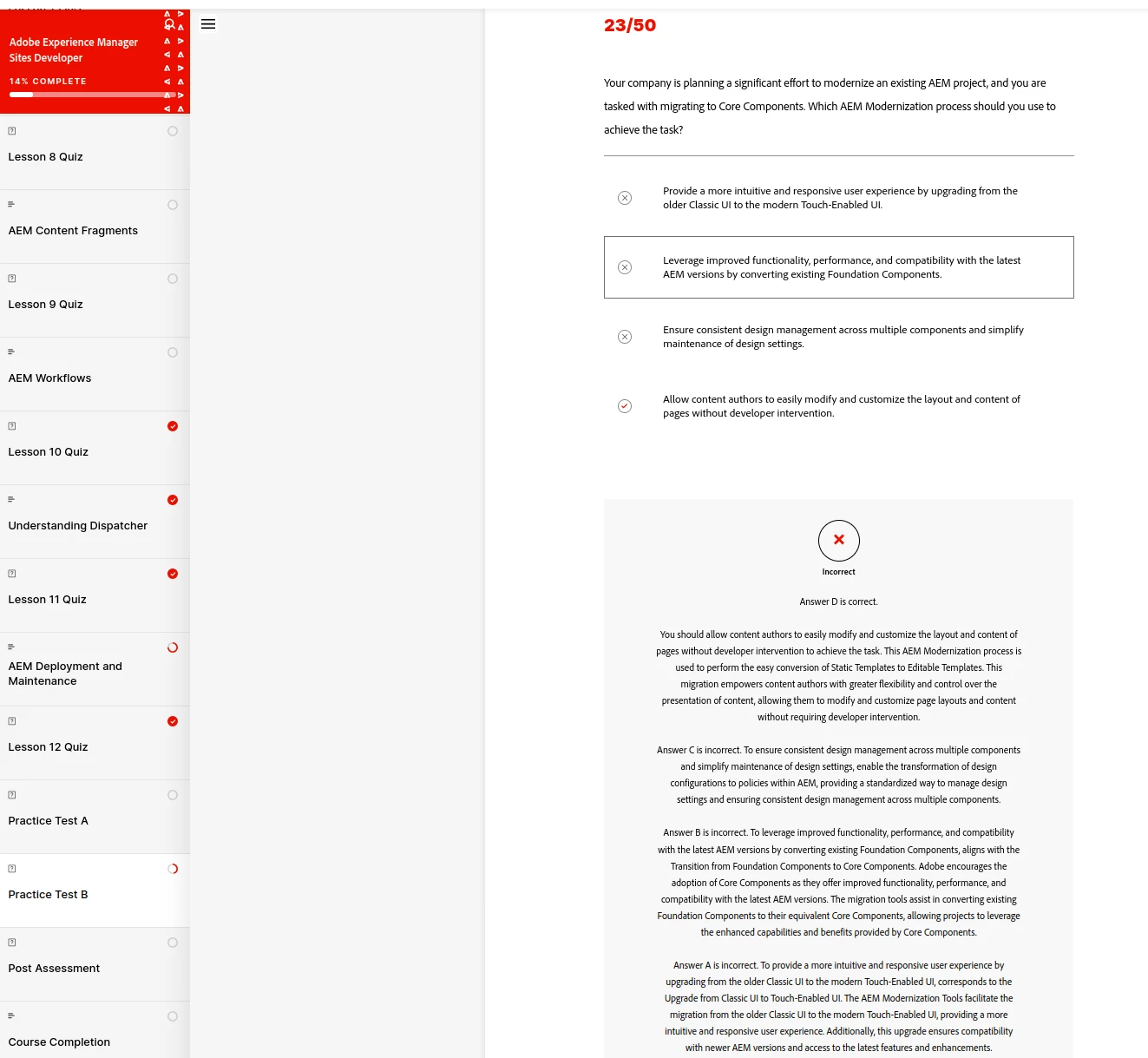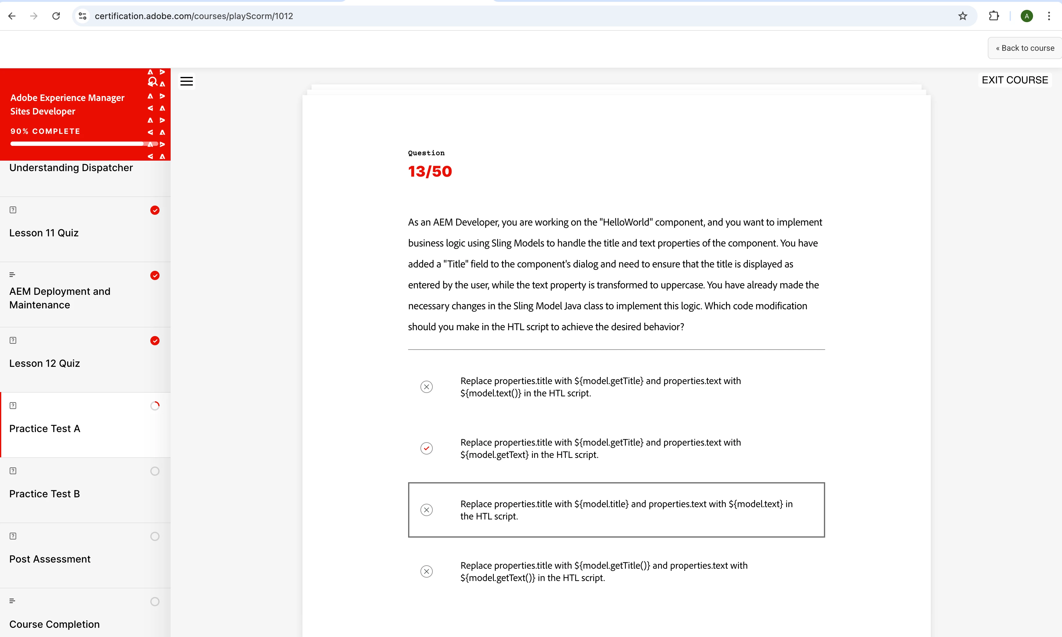Thank you for sharing your query regarding the thirteenth question in the Adobe Experience Manager Sites Developer course.