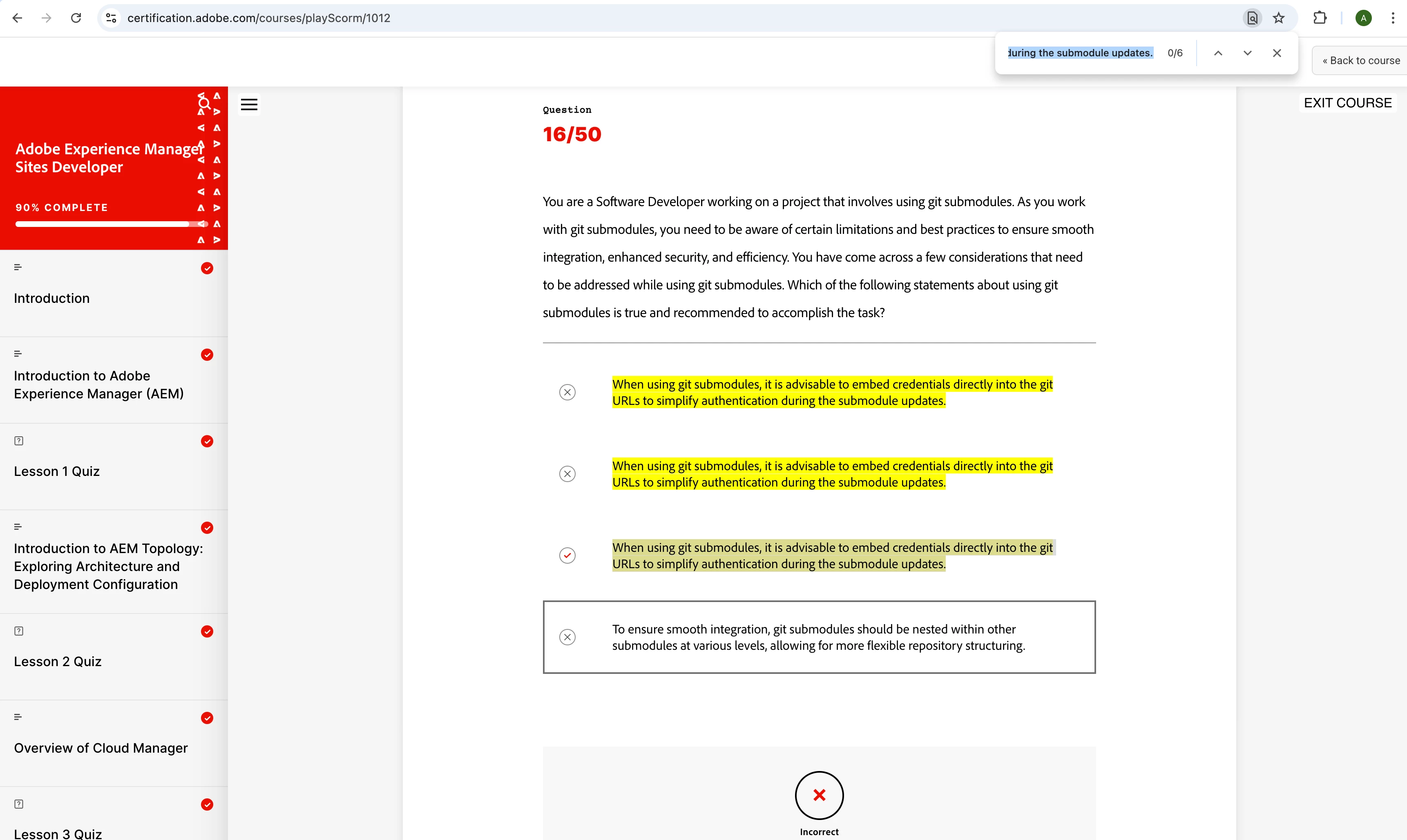 You can also visit this link https://certification.adobe.com/courses/?/courses for additional courses and resources that will help you build your knowledge and skills in Adobe Experience Manager, and support you in preparing for future certifications.