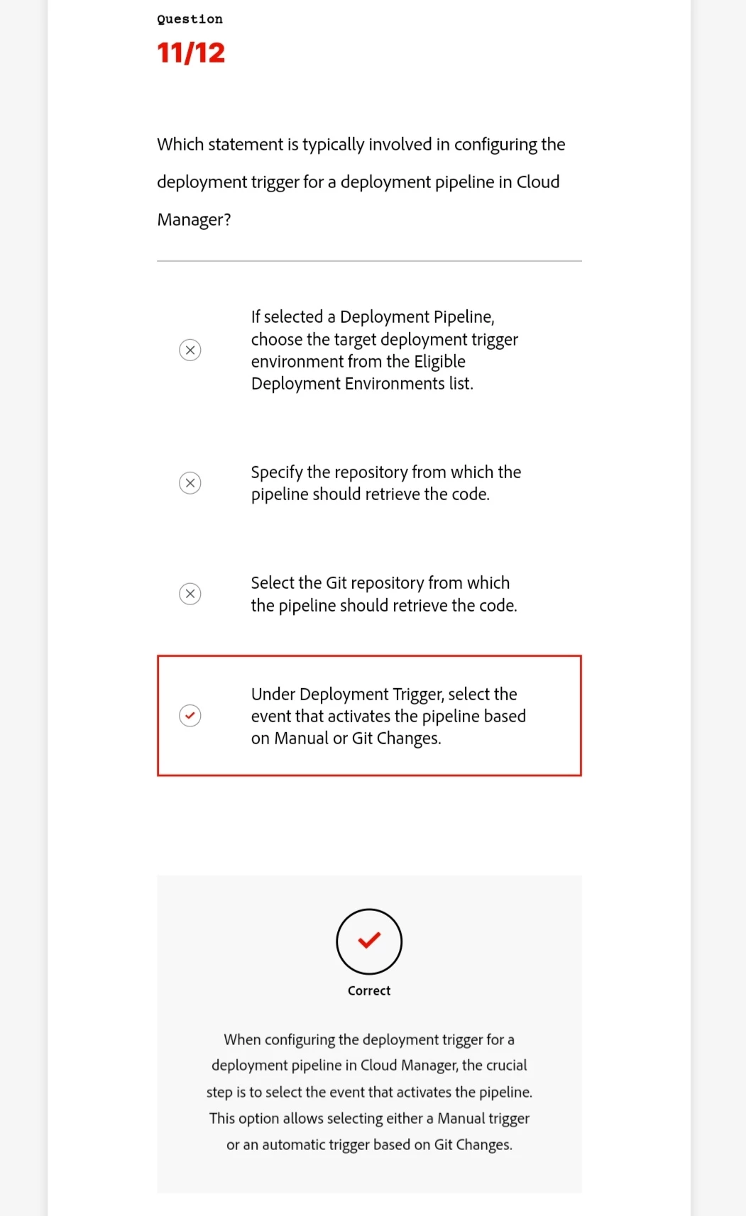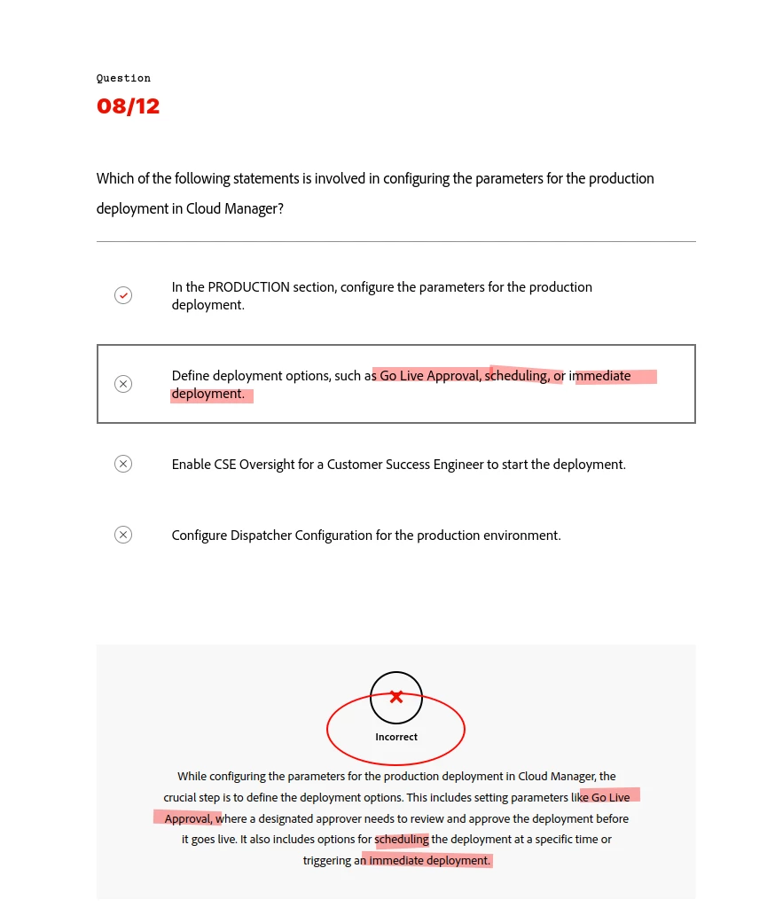We follow the Adobe Experience League Community Forum Guidelines in this discussion thread. If the response resolves your question, consider giving a Like to the learning specialist who replied. We appreciate the kudos! Questions outside the scope of the online courses and exam preparation guide will be directed to the main community forum page.
