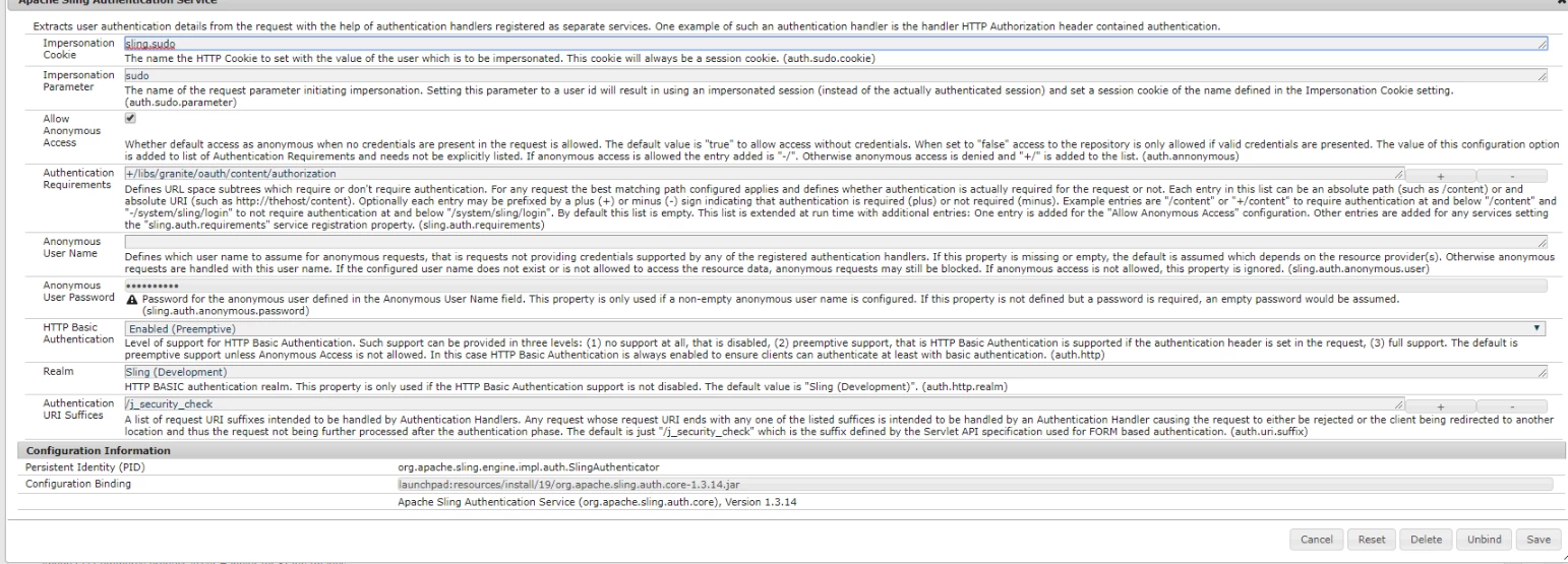 20.07.2018 10:44:38.337 *INFO* [qtp431714949-102] org.apache.sling.auth.core.impl.SlingAuthenticator getAnonymousResolver: Anonymous access not allowed by configuration - requesting credentials