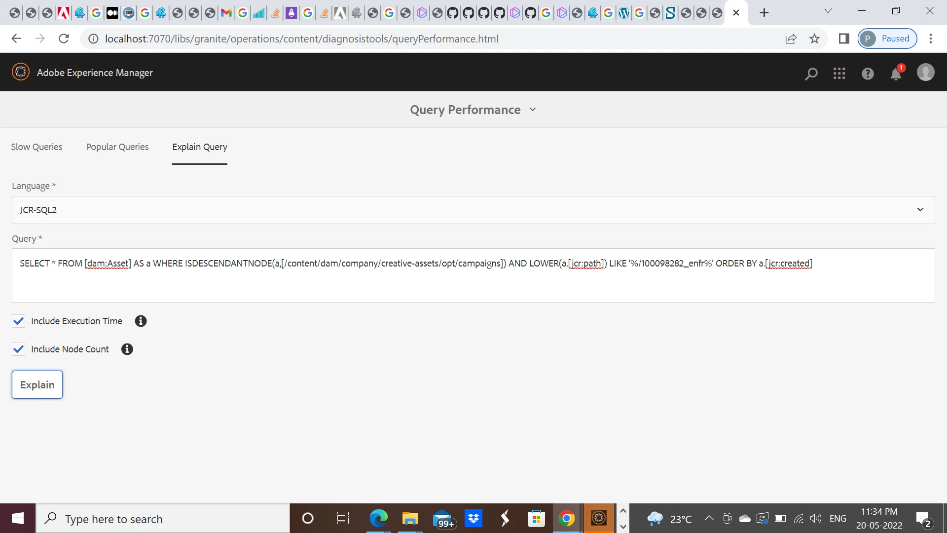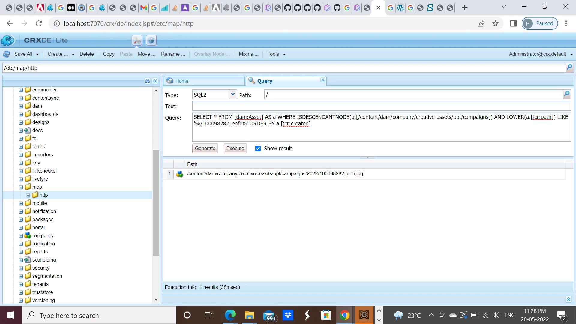 SELECT * FROM [dam:Asset] AS a WHERE ISDESCENDANTNODE(a,[/content/dam/company/creative-assets/opt/campaigns]) AND LOWER(a.[jcr:path]) LIKE '%/100098282_enfr%' ORDER BY a.[jcr:created]