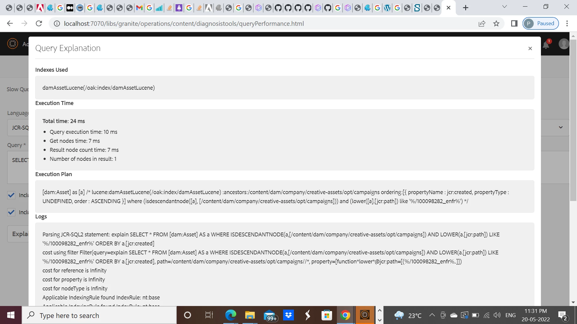 Now when we run the above query, query tool gives 0 results with the LOWER function in it