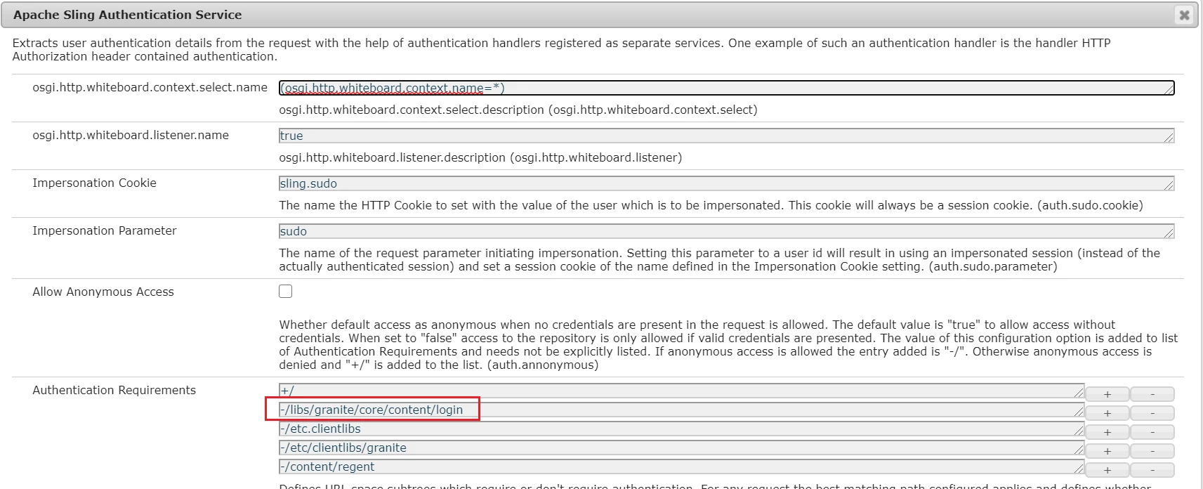 However, we cant login as admin or other AEM users, since the legacy AEM login page is replaced with the SSO login page. Tried modifying the path variable in SAML OSGI Config but no luck we had to revert the OSGI Configuration.