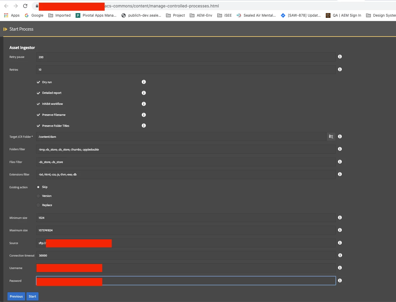 In AEM 6.5.10 Managed Instance , I am trying to import Assets from a sftp server using Asset ingestor in ACS Manage Controlled Process.
