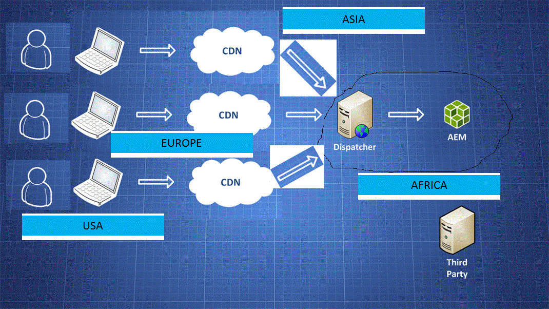 Let us say that my application has one Production Server with one dispatcher and both of these are deployed in Africa.