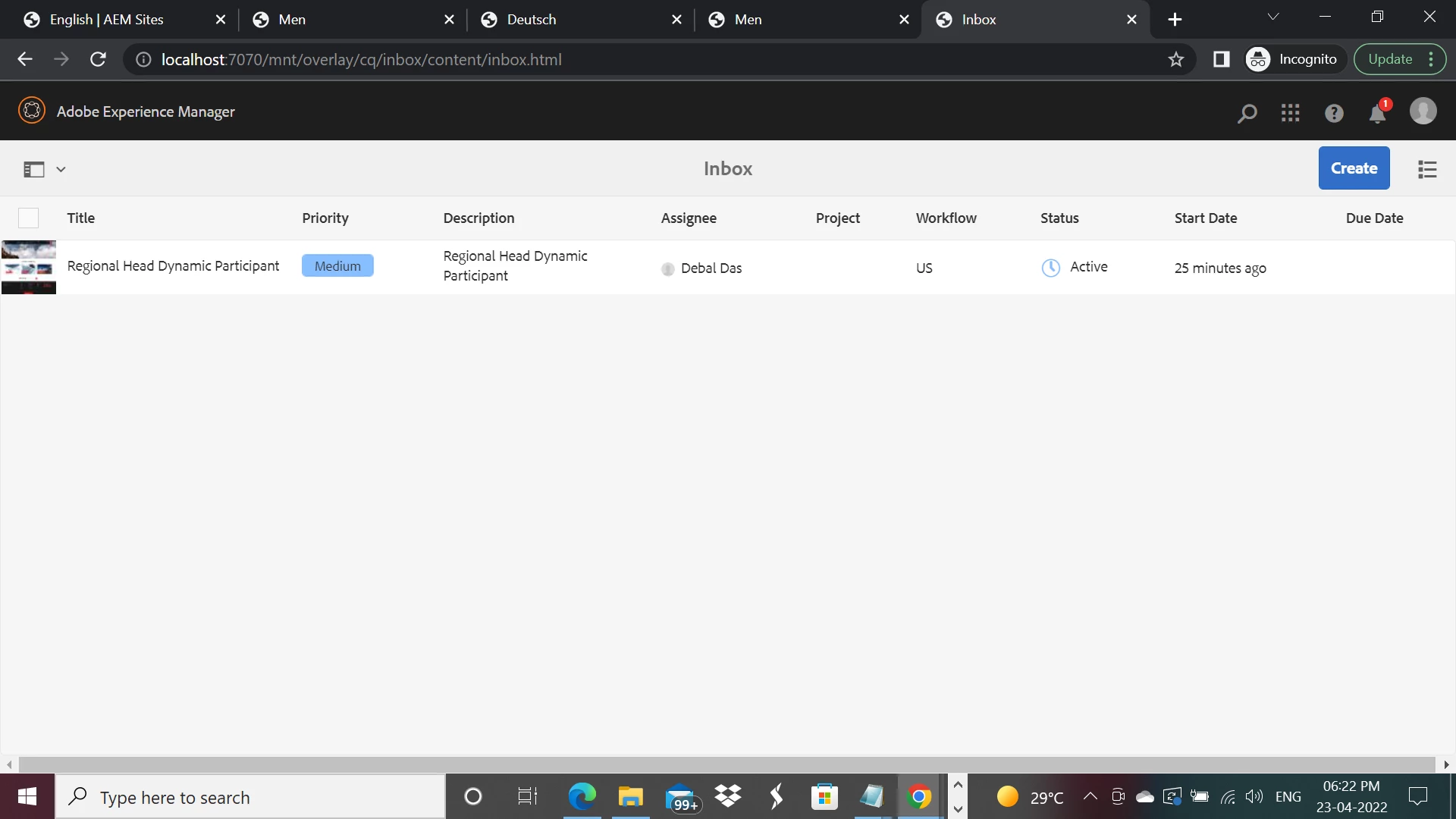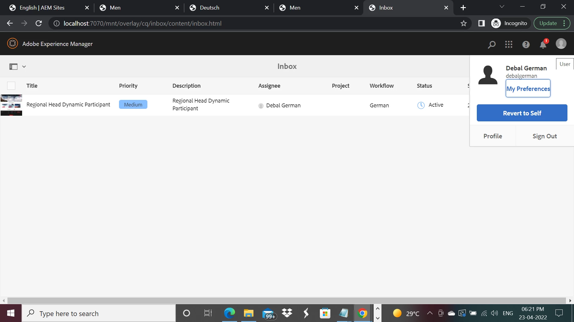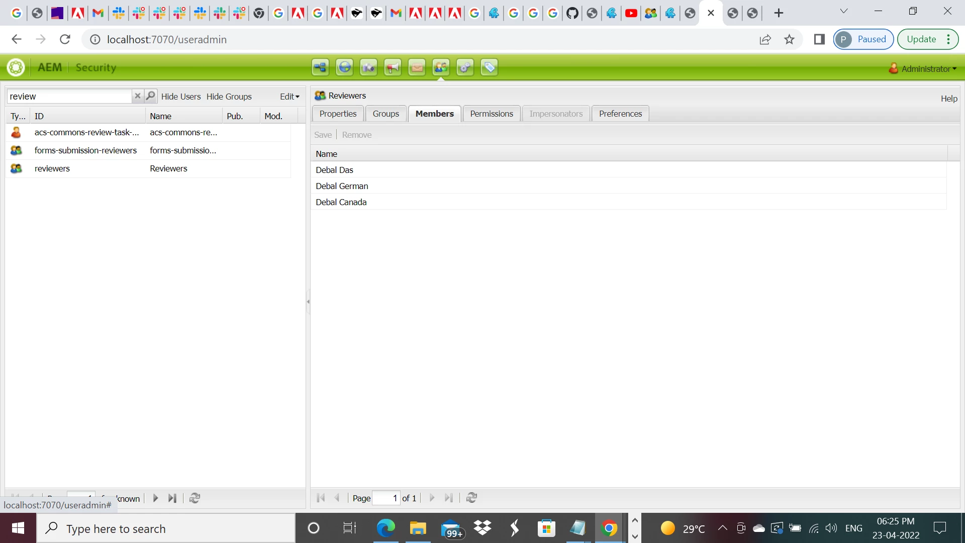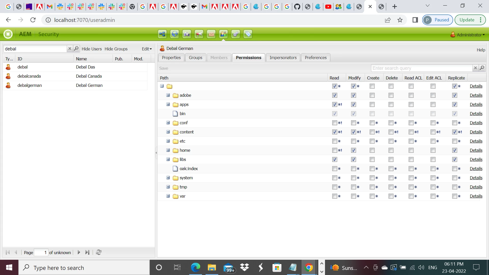 Here debal, debalcanada and debalgerman are three different AEM users, they are part of same user group as shown below -