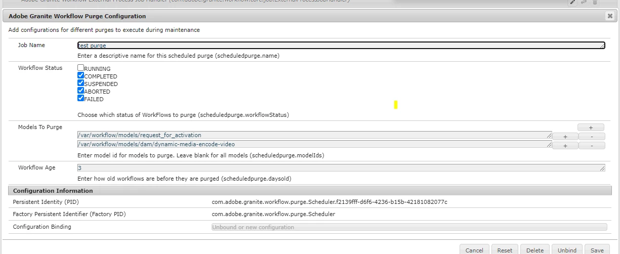 AEM workflow configure Workflow history time period