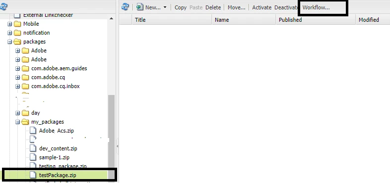 In classic UI I can select particular package from miscadmin and run the workflow like below screenshot but I'm looking for the same in touch UI