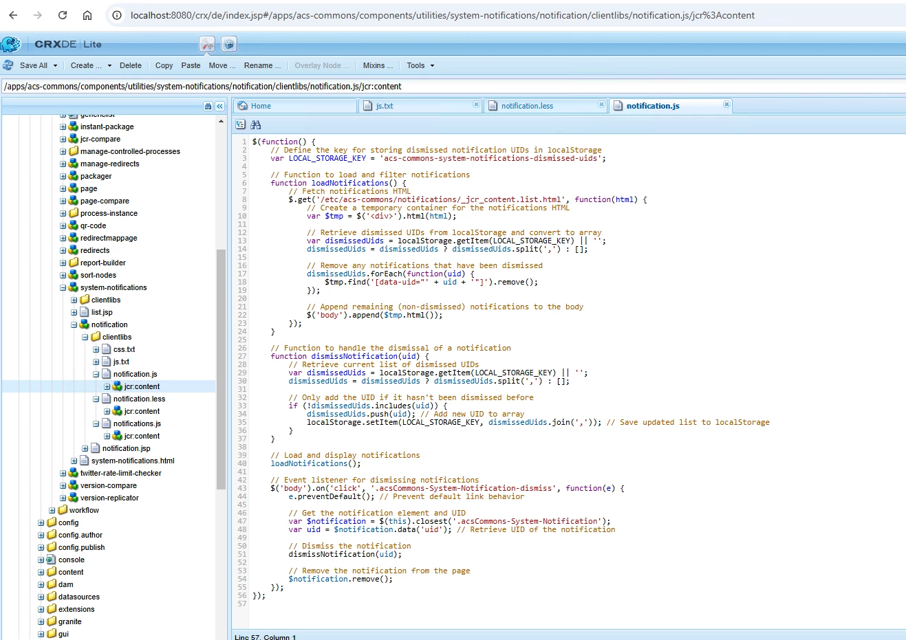 [AEM6.5]Add custom JS functionality to OOB ACS Commons Notification.