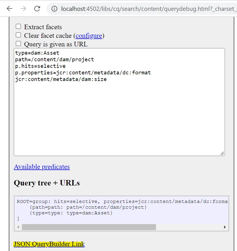 Our requirement is to get the list of all the available assets and metadata from /content/dam/wknddemo path.