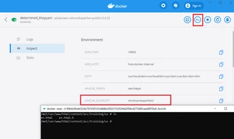 I tried this command (after running docker exec) but it only found the default Apache HTTPD index.html. Any ideas? Thanks