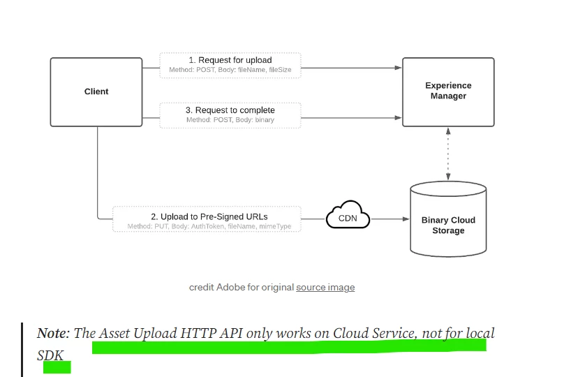 AEMaaCS Local instance not fetching response details for initiate upload