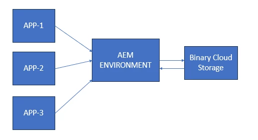 In AEMaaCS, Binary Cloud Storage for Assets is a centralized repo for storing binary for assets and it is shared across Cloud Service. Can we have different Binary cloud storage for different apps with in an application running on Cloud Service. Have a requirement where different apps upload Assets onto AEMaaCS. In case different apps upload Assets onto Cloud service and Binary cloud storage being shared where other apps can have access of assets uploaded by other apps.