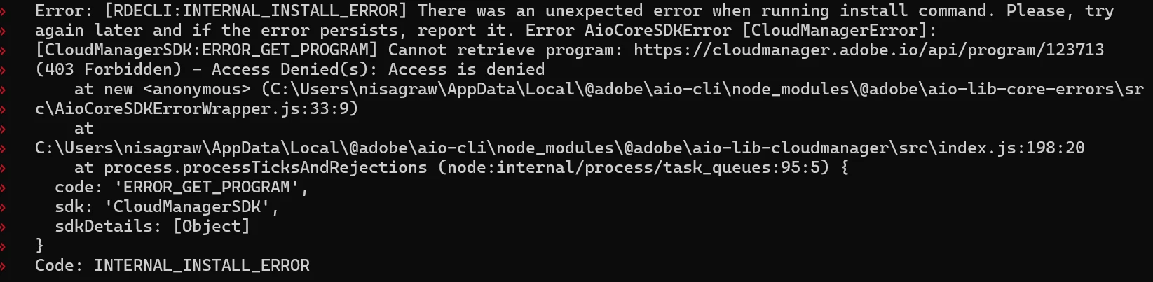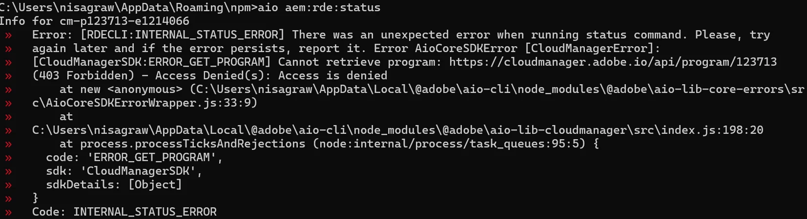 I am getting below error while running "aio aem:rde:install ....." command
