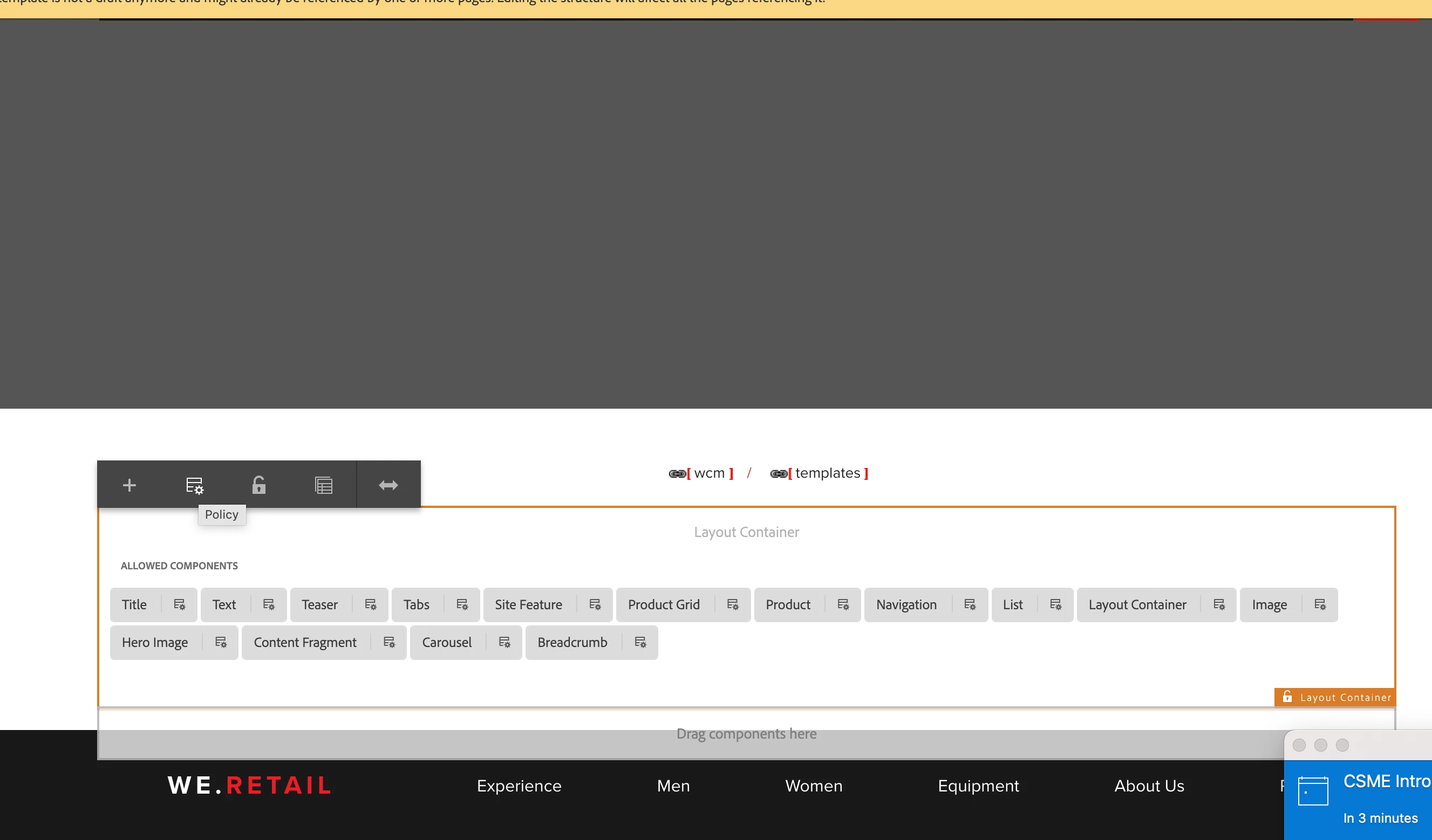 Yesterday, I received some really helpful advice around components and whether they're shareable across more than one site. Today, I wanted to follow the steps I'd been shown yesterday, but the components within the layout container are no longer visible, and when selecting the layout container I no longer see the 'policies' button. I may have inadvertantly pressed/delted something, but I can't for the life of me work out what.