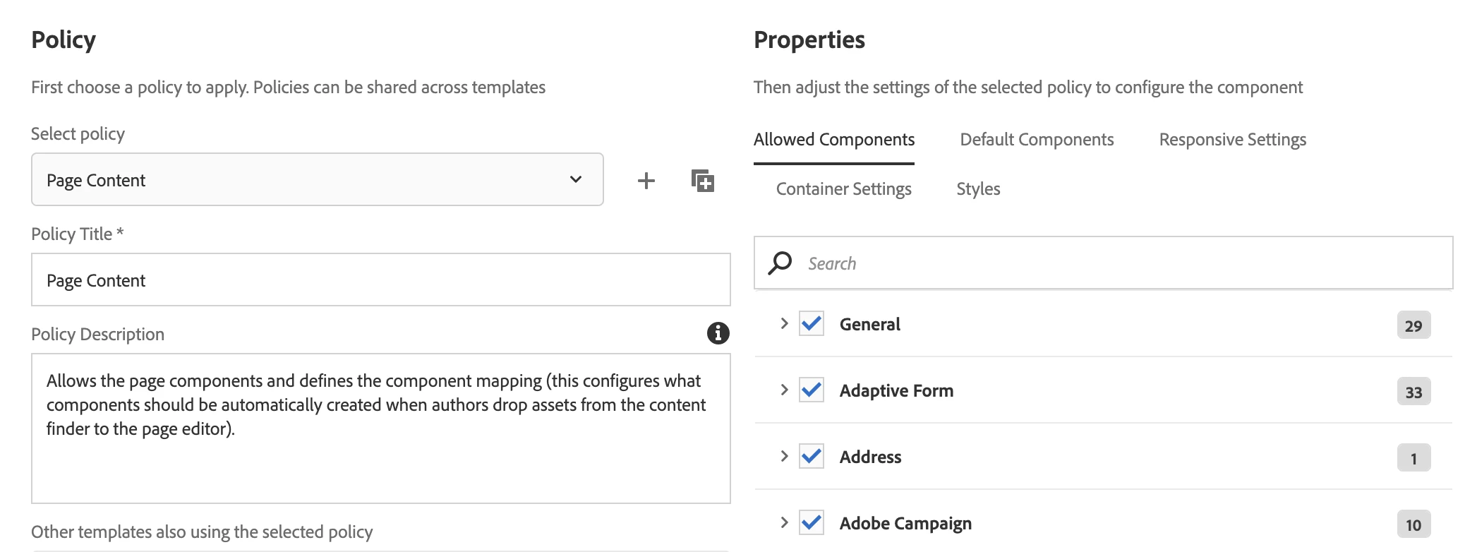 Allowed components not displaying