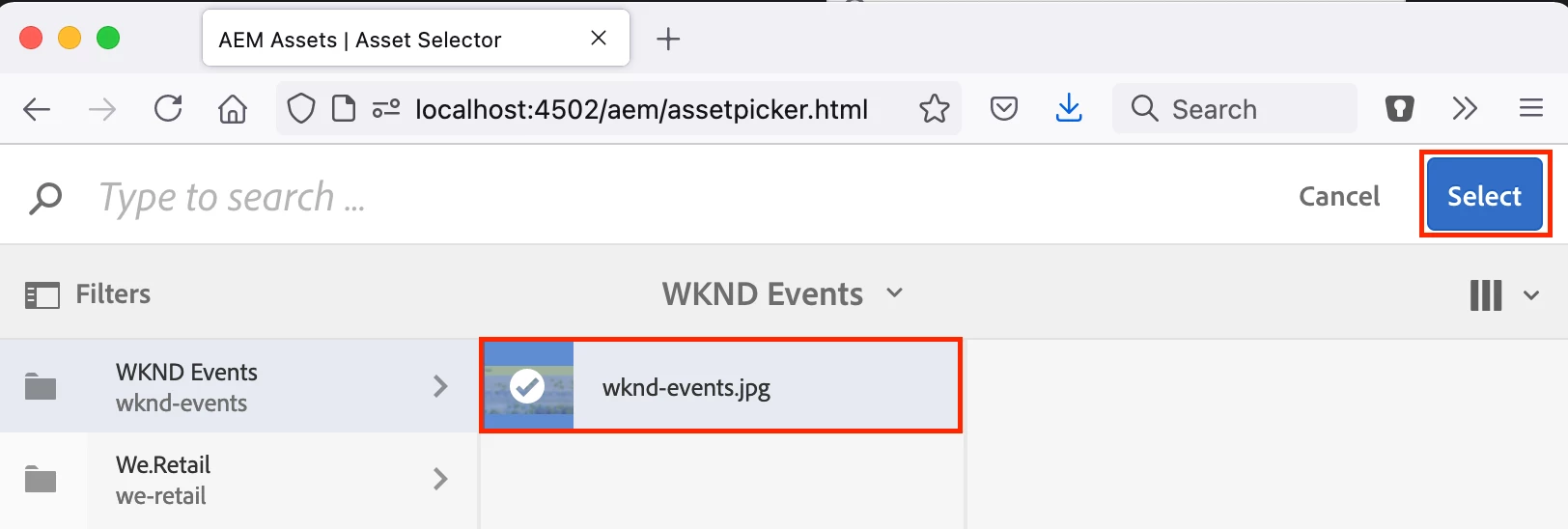 - Using the AEM Asset Selector (formerly know as Asset Picker)