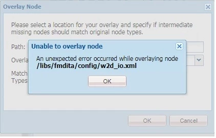 An unexpected error occurred while overlaying node /libs/fmdita/config/w2d_io.xml in AEM