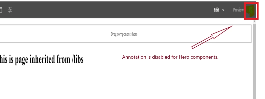 Scenario : is like in a page under /content example: homepage we have some custom components like hero component and resoucesbar component, global component  and here in Hero component if we are trying to add Annotation like we see in above image.