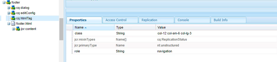 I'm using cq:htmlTag in my component as per below screenshot to add up the class and role to my <div>.