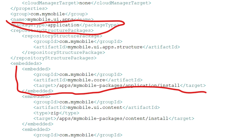 [ERROR] ValidationViolation: "jackrabbit-packagetype: Package of type 'APPLICATION' is not supposed to contain OSGi bundles or configurations!", filePath=jcr_root\apps\mymobile-packages\application\install\mymobile.core-1.0.0-SNAPSHOT.jar, nodePath=/apps/mymobile-packages/application/install/mymobile.core-1.0.0-SNAPSHOT.jar