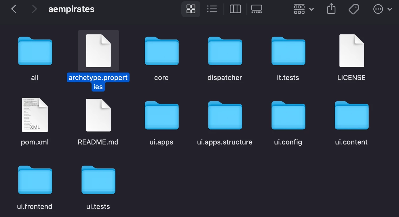 However, if you had a project freshly created by you on your system, you would see a file named : archetype.properties, but sadly, it would only have parameters used to generate that project and would not have the archetype version detail.
