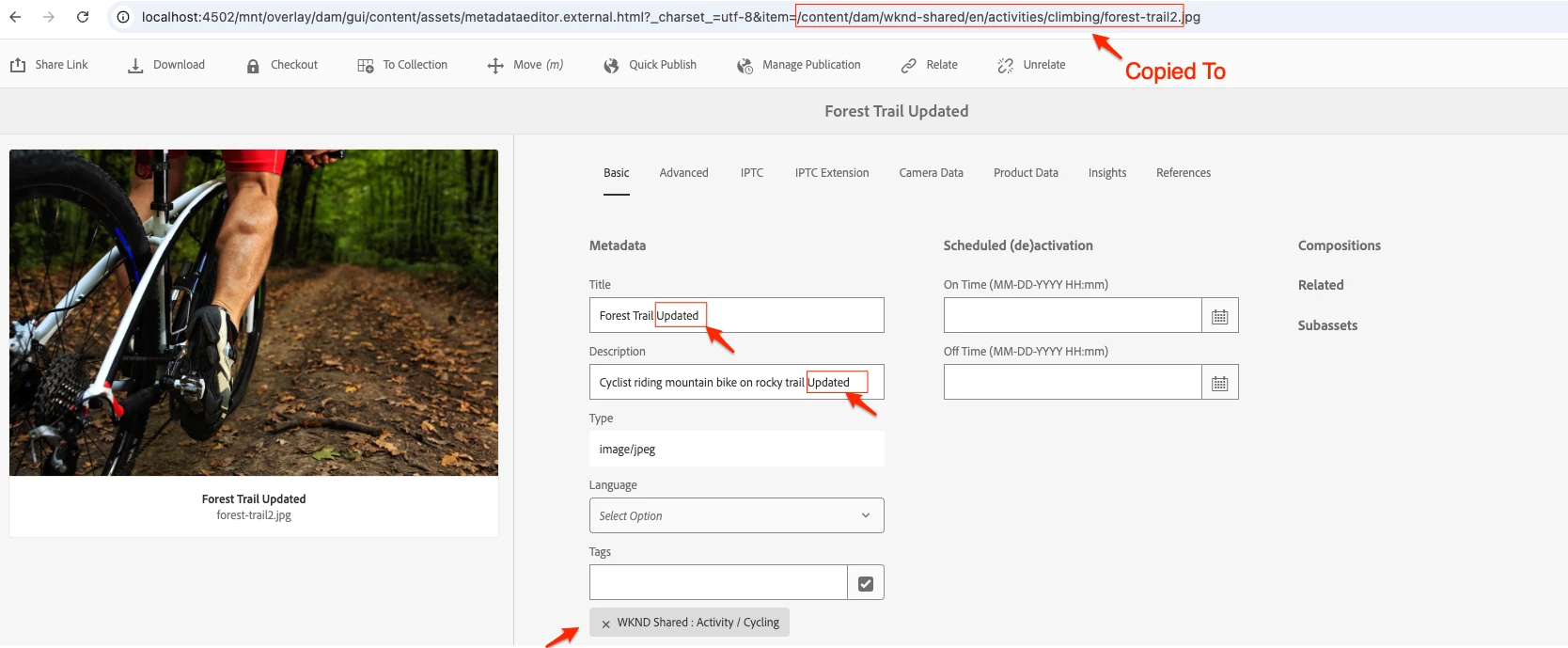 In my case I have an asset that came with the metadata from original source. I fixed the metadata (Title, Description, Tags, Keywords) on the original file, then needed to copy it to a new folder to have two copies. The new copy of the file is displaying the metadata it came with from the original source. Why did the AEM DAM not transfer the metadata that was added through the UI? Is this a bug? This means that my stakeholders who copied assets from the folder of assets with updated metadata are seeing wrong or non metadata at all. I tried applying different metadata schemas, but it did not make any changes.