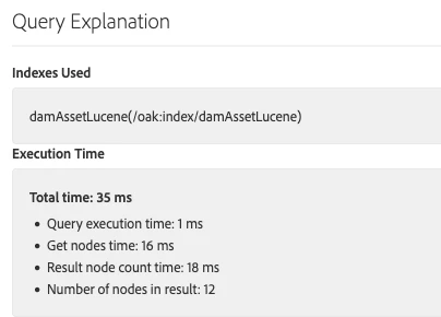 You can see that in the CRX query and in the query explanation, I can see 12 results, while the UI gives 10. While doing a move operation, I see all the references, all 12 of them, but in the UI it's max. 10. This is confusing for the content authors sometimes, so I'd like to get that resolved.