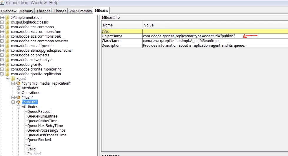 JMX CRITICAL - com.adobe.granite.replication:type=agent,id=publish