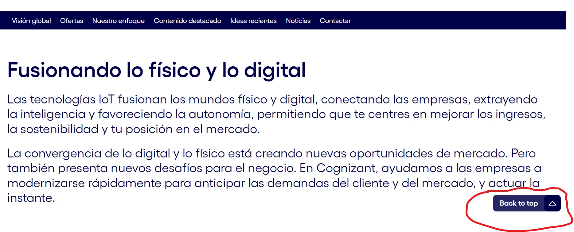 Back to top functionality in aem sites pages