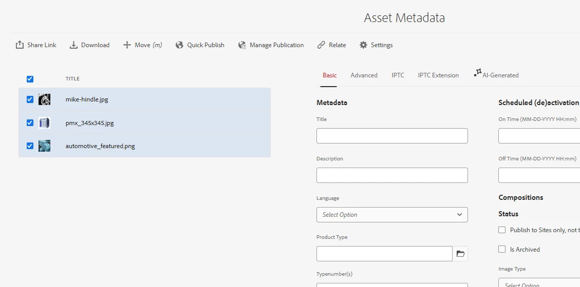 | Improved/Expected Behavior: | 1) Selecting multiple assets 2) opening details 3) editing common meta data, e.g. attaching a meta property, tag, description etc to ALL files at once while all are selected 4) selecting only certain desired assets individually (in the same view) and editing individual meta data like titles, tags etc. 5) When saving, individual as well as shared meta data is saved into the assets. See Bynder DAM solution "batch editing" for comparison: Edit Assets in Asset Bank – Bynder Support. | |