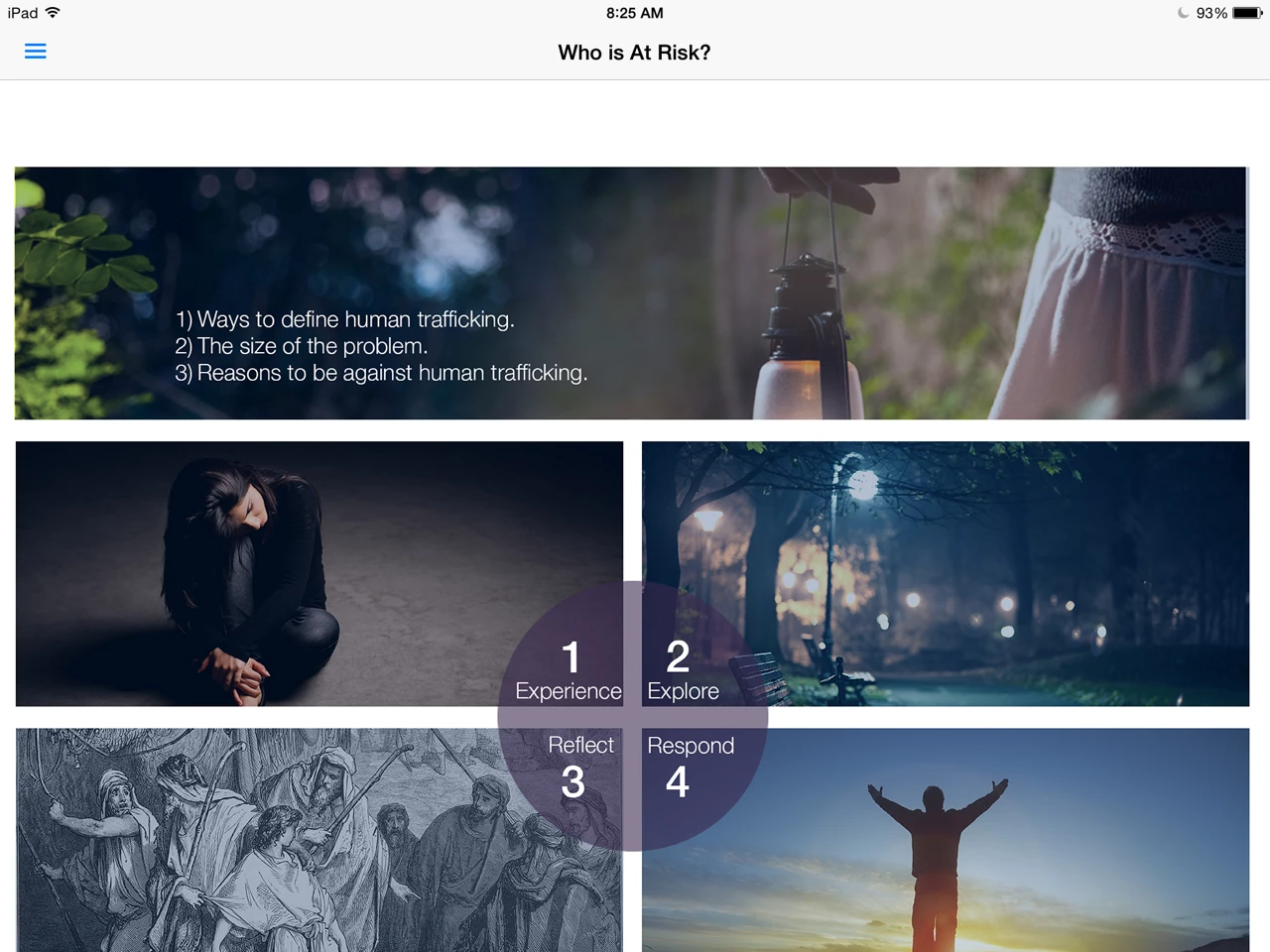 Hi, We are creating an educational application on the dangers of Human Trafficking. (I only start with that bit of info as I have added screen shots and wanted to be clear on our applications intent)