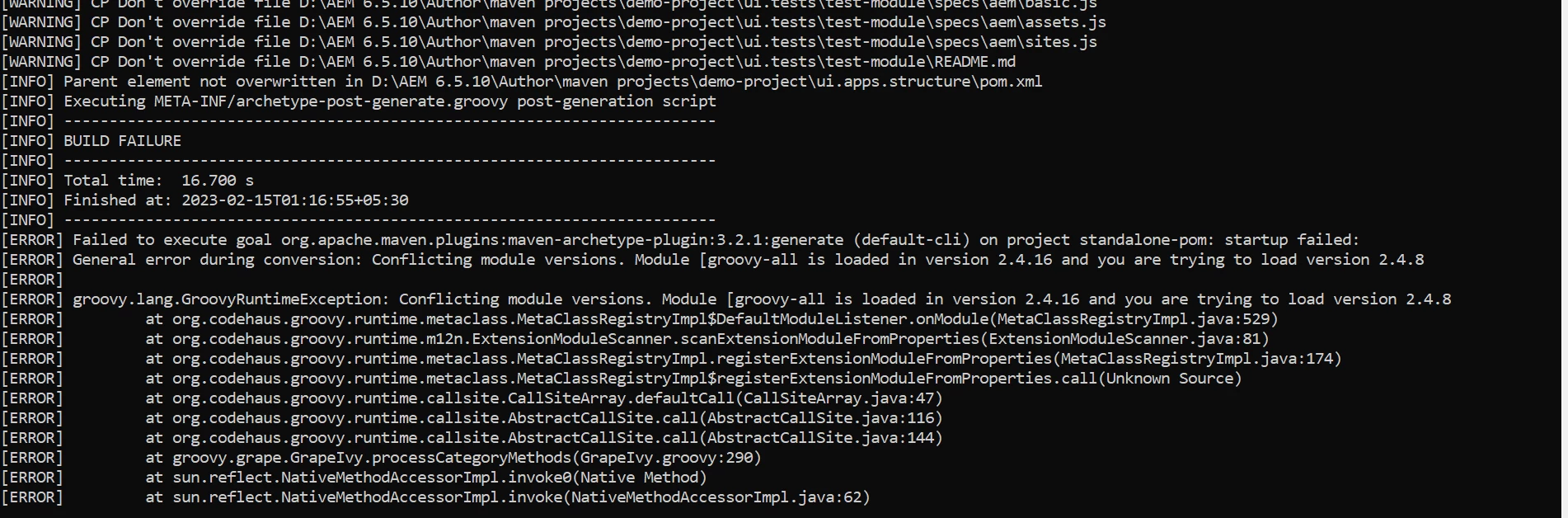 Due to maven-archetype-plugin version 3.2.1, pom file has 2.4.16 version for groovy-all