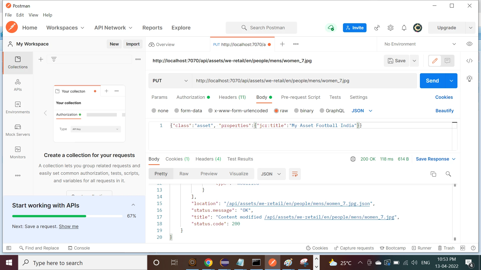 I want to perform CRUD bulk operation on asset with a single action via API call using postman.