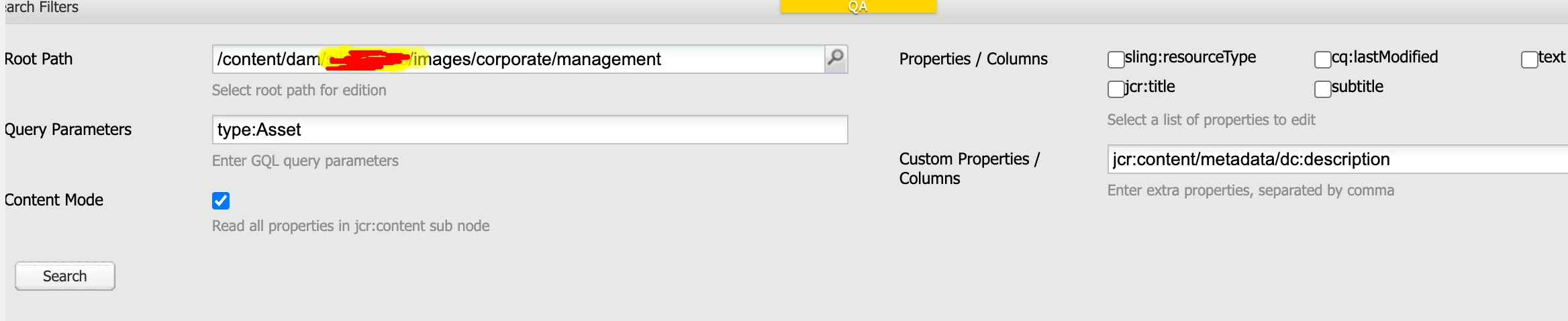 How shall I target this and do the bulk upload via bulk editor? My requirement is to target all files(jpeg/png) under /content/dam/test-project/jpeg/ and update the dc:description.