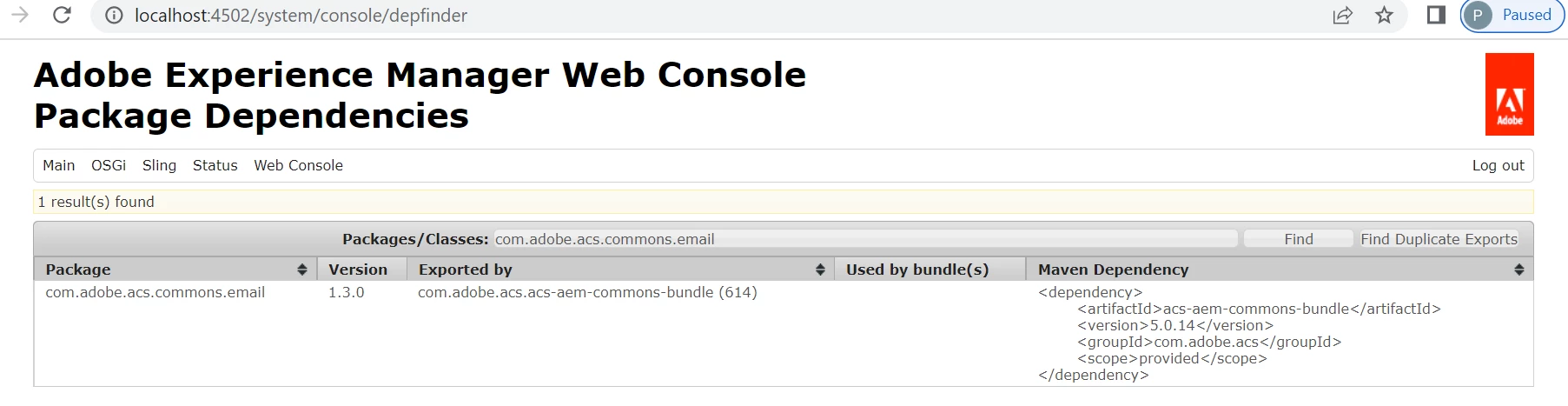 Bundle [core-bundle] is importing package(s) com.adobe.acs.commons.email in start level 20 but no bundle is exporting these for that s tart level.