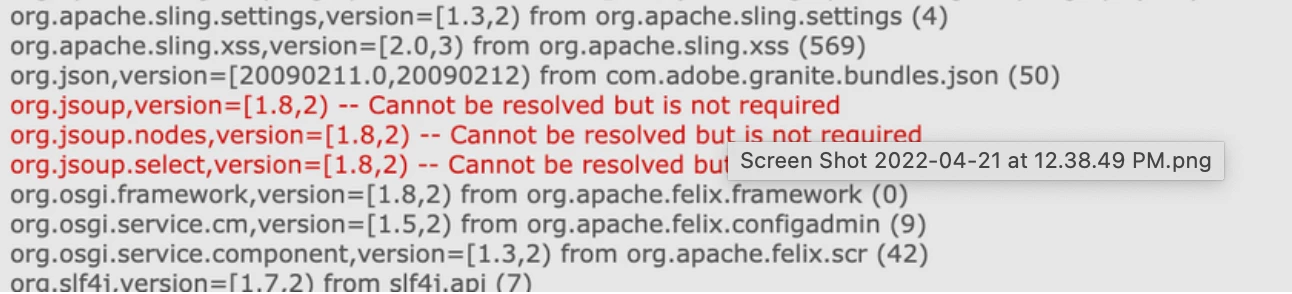 We have upgraded to Service Pack 6.5.14 recently and found that bundle is not getting Active. below are few errors we are facing even after having jsoup dependency.