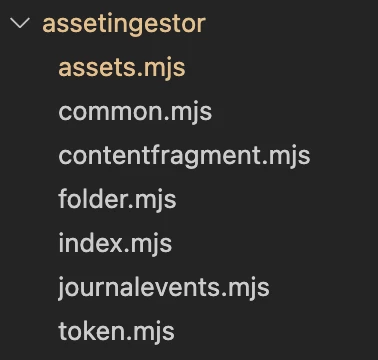 Its single action starting from index.mjs. Conditionally I call contentfragment or folder or asset functions. And token, journals are housekeeping. But overall is a single runtime action, performing different tasks based of conditions in index.mjs